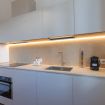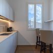 Dal salotto, sullo stesso piano, si accede a una cucina completamente attrezzata, comprensiva di un forno a microonde incassato, un piccolo frigorifero con congelatore a cella, una lavastoviglie e un piano cottura ad induzione. Il servito di piatti, posate e bicchieri è completo per 4 persone.